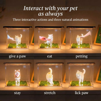 Enjoy natural animations such as giving a paw, eating, petting, stretching, and more — carefully crafted to reflect your pet’s personality and spirit.