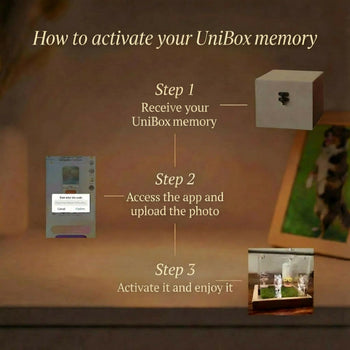 Receive your UniBox memory, upload your pet’s photo through our app, activate your hologram, and enjoy a lasting keepsake made just for you.