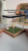 Set up the wooden base, place the decorations inside, and gently fit the clear display box on top.